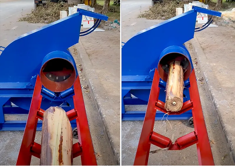 - Thuộc dòng máy công nghiệp, hệ thống con lăn tự động cuốn liệu. Bà con chỉ cần đặt thân chuối lên, máy sẽ tự động ”nuốt” và xử lý liên tục, bền bỉ suốt nhiều giờ. Toa nạp dài đảm bảo an toàn tuyệt đối cho người sử dụng