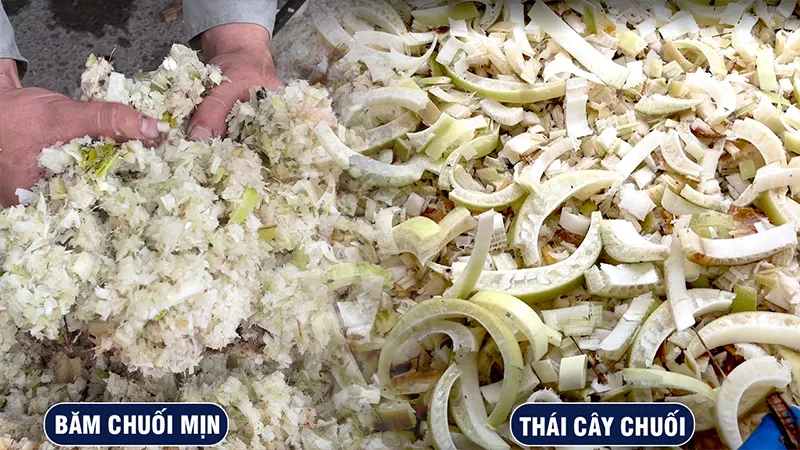 Thân chuối là một loại nguyên liệu tuy rẻ nhưng góp phần không nhỏ trong quá trình phát triển của vật nuôi. Thân chuối được đa số bà con chăn nuôi theo dạng hộ gia đình và trang trại nhỏ tin dùng.