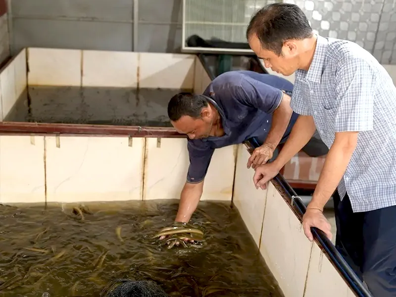 - Thu bắt lươn nhẹ nhàng bằng vợt hoặc tay, phân loại chúng theo kích cỡ nếu cần