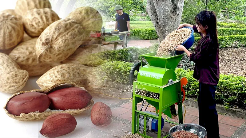 ( bạn có thể sử dụng lạc củ còn vỏ để giảm chi phí nhập liệu hàng tháng, rồi sử dụng máy bóc vỏ lạc hỗ trợ làm sạch vỏ)