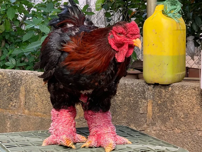 Điểm độc đáo nhất của giống gà này nằm ở cặp chân vảy rồng to sần sùi, đỏ rực.