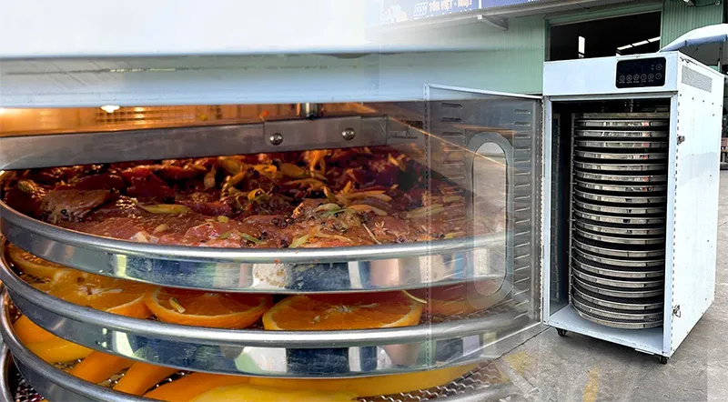Để giải quyết ”nỗi đau” này, việc đầu tư vào máy sấy thực phầm Bình Quân chính là bước đi chiến lược . Công nghệ sấy nhiệt đối lưu giúp nhiệt lan toả đồng đều đến từng thớ thịt: