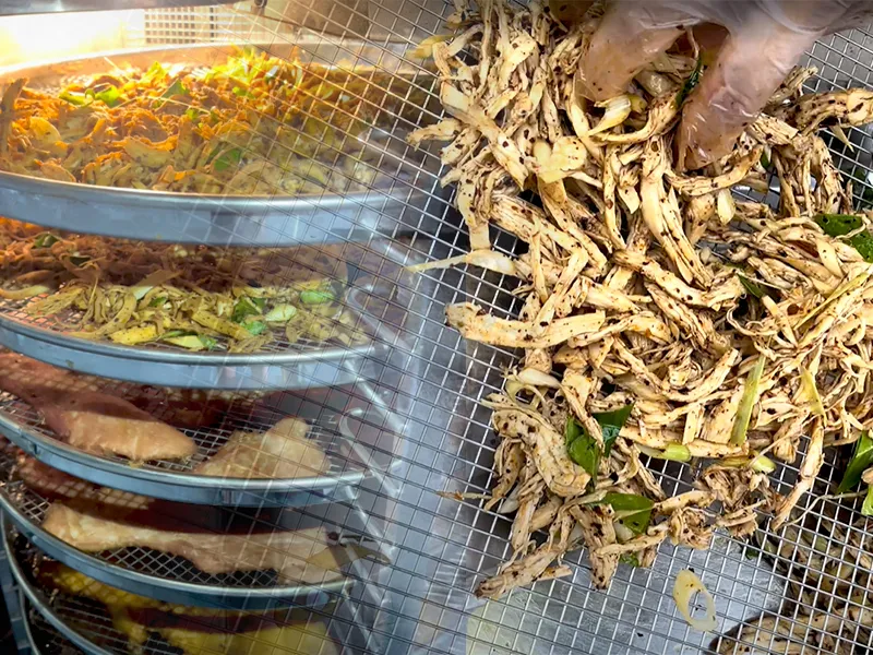 - Dàn đều thành phẩm lêm khay sấy, rồi đưa chúng vào máy sấy