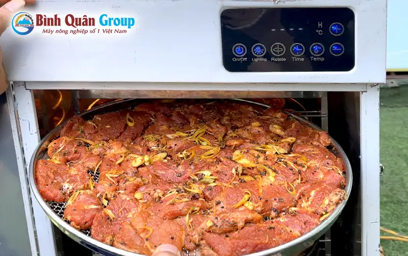 - Kiểm soát hoàn toàn nhiệt độ và thời gian sấy cho ra mẻ thịt khô đều – thơm – giữ nguyên màu sắc