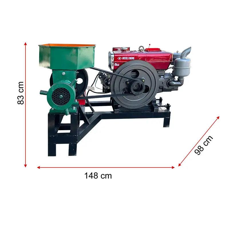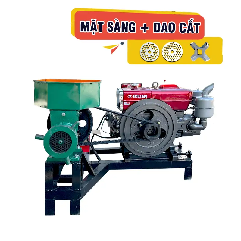 Sử dụng đầu nổ D15 truyền lực qua 3 dây đai curoa máy co năng suất đạt khoảng từ 400 – 600 kg/giờ, đáp ứng tốt nhu cầu chăn nuôi