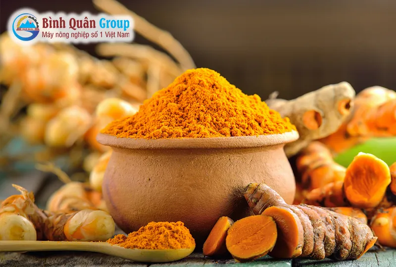 - Máy nghiền bột nghệ: những tảng bột nghệ sau khi được phơi khô sẽ được cho vào máy nghiền thành tinh bột