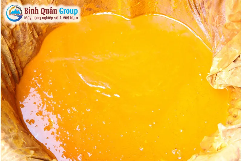 Bước 3: Dùng vải lọc hỗn hợp vừa xay nhuyễn để loại bỏ bã và xơ. Bạn cần thêm nước vào bã nghệ đến khi chỉ vắt được nước trong thì thôi. Và phần nước vắt được đó chính là nước cốt