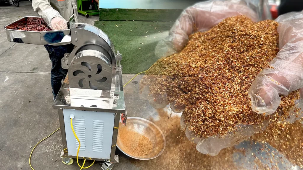 Nếu thành phẩm của bạn không cần quá mịn nên sử dụng máy nghiền gia vị. Máy sử dụng búa đập, nghiền phân tán lựa va đập, giúp máy xử lý khối lượng lớn nguyên liệu trong thời gian ngắn