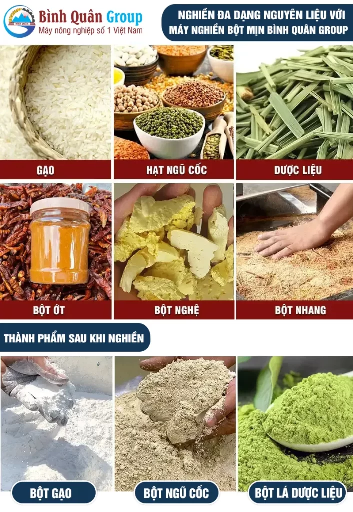 | Gọn nhẹ, giá phải chăng | Nghiền bột gạo, ngũ cốc dược liệu | Năng suất cao | Nghiền đa dạng nguyên liệu |