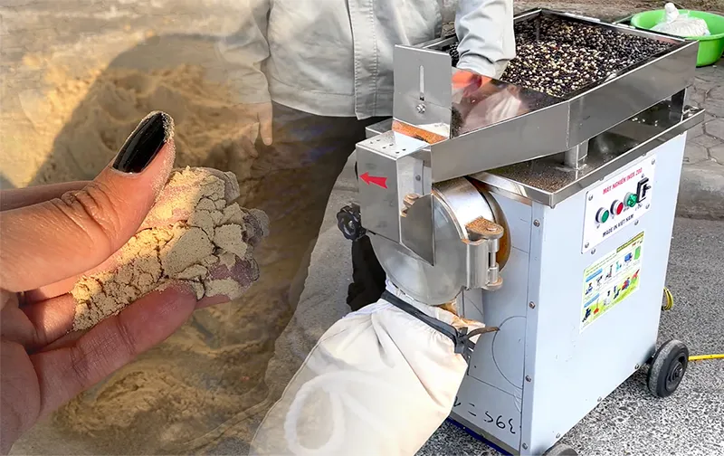 Độ mịn: lựa chọn sàng phù hợp ( sàng lỗ nhỏ cho bột mịn hay sàng lỗ to nghiền mảnh)