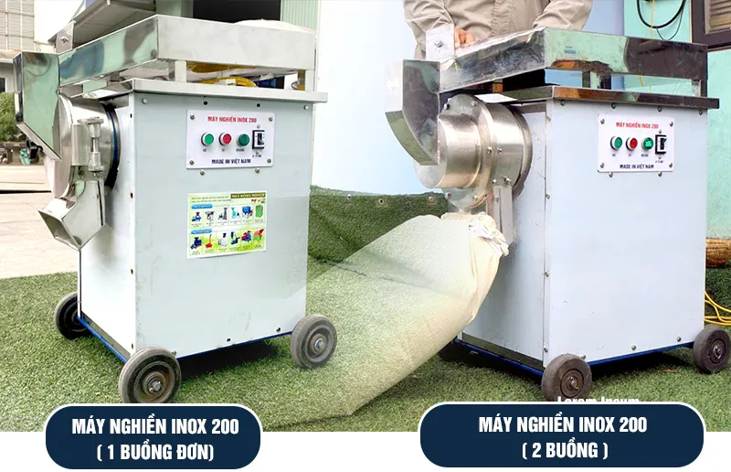 - Nếu xay bột gia đình, xưởng sản xuất vừa và nhỏ: nên chọn máy nghiền inox 200 vì sự tiện lợi và giá cả phải chăng
