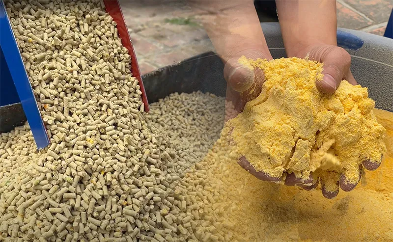 - Dạng viên: sử dụng máy ép cám viên chuyên dụng để ép thành viên nén, giúp vật nuôi dễ ăn – giảm rơi vãi và bảo quản được lâu hơn